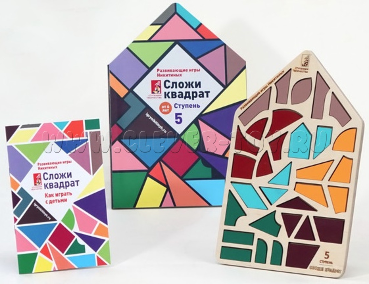 Сложи квадрат. Ступень 5. Планшет-домик (3 уровень Никитина, дерево)