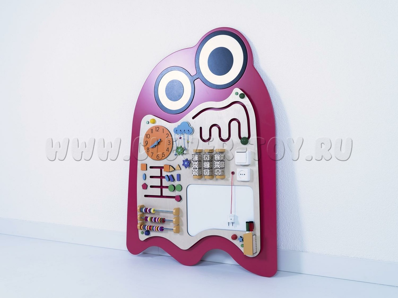 Бизиборд "Вит" предназначен для детских образовательных учреждений и помогает изучать геометрические фигуры (форму, количество углов, вид, цвет и особенности). Задания составлены по принципу "от простого к сложному". Например, при изучении геометрических фигур можно тренироваться в счёте, определяя количество углов. Также можно рисовать запомнившиеся фигуры или играть в крестики-нолики, вращая фигуры.
