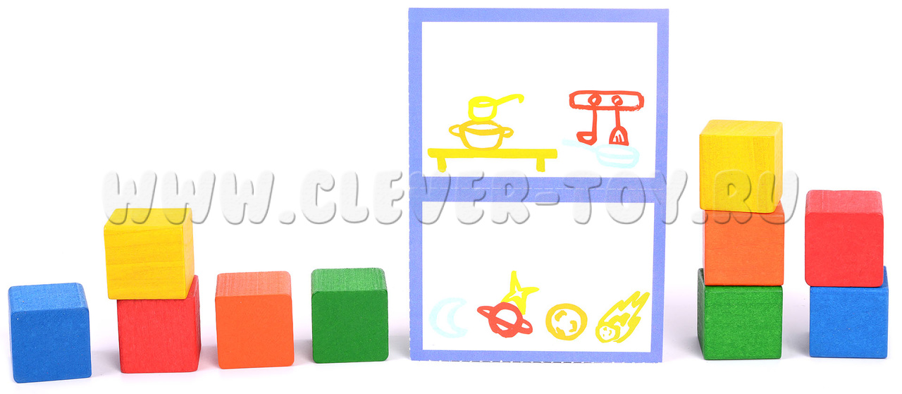 • 20 цветных деревянных кубиков,