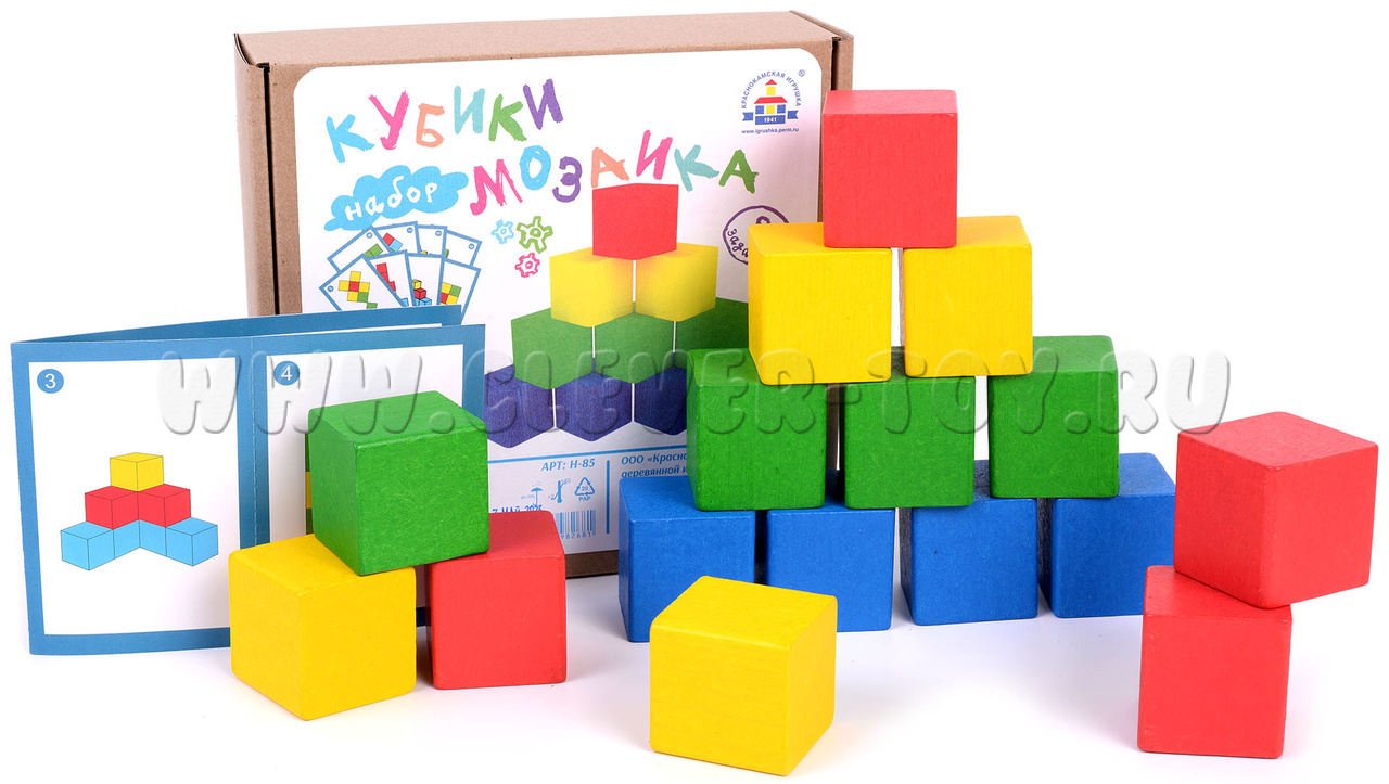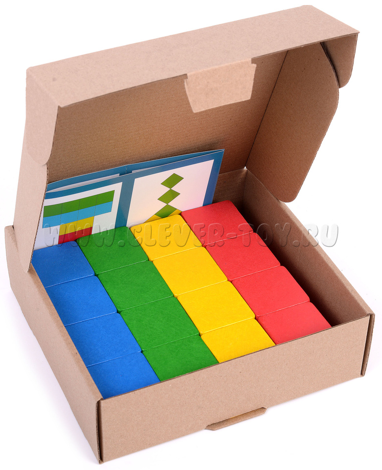 • 16 цветных деревянных кубиков,