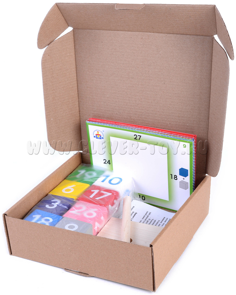 - 8 разноцветных кубиков с цифрами (4 х 4 х 4 см);