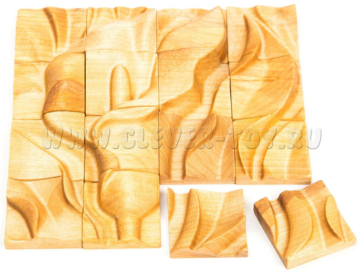 Пазл состоит из 16 деревянных элементов.