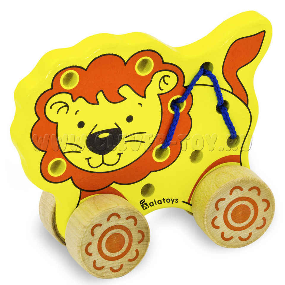 Игрушка выполнена в форме милого львенка, который станет хорошим другом для мальчика или для девочки. "Лев" многофункциональна игрушка потому, что ее можно не только катать, но и развивать непослушные ручки. Огромную пользую, она принесет детям, у которых трудности в речевом развитии, потому, что развивая моторику рук и пальцев, можно параллельно развивать участок коры головного мозга, отвечающий за формирование речи. Если правильно протянуть шнуровку между дырками, то можно сделать из льва – каталку. Купить игрушку "Лев" можно в нашем магазине по привлекательной цене.