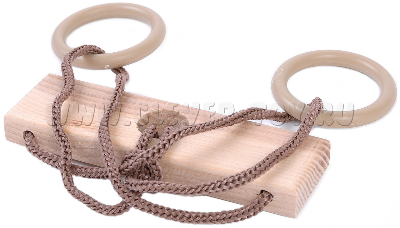 Головоломка состоит из прямоугольной деревянной дощечки, в центре которой находится отверстие, через которое проходит замкнутый шнурок. На каждой петле шнура висит по кольцу, и цель игры - переместить одно кольцо на другую сторону шнура, в зону другого кольца.
