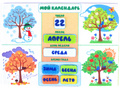 • игровое поле (основа) с изображением четырёх деревьев в разное время года и четырёх различных блоков (число, месяц, день недели, время года);