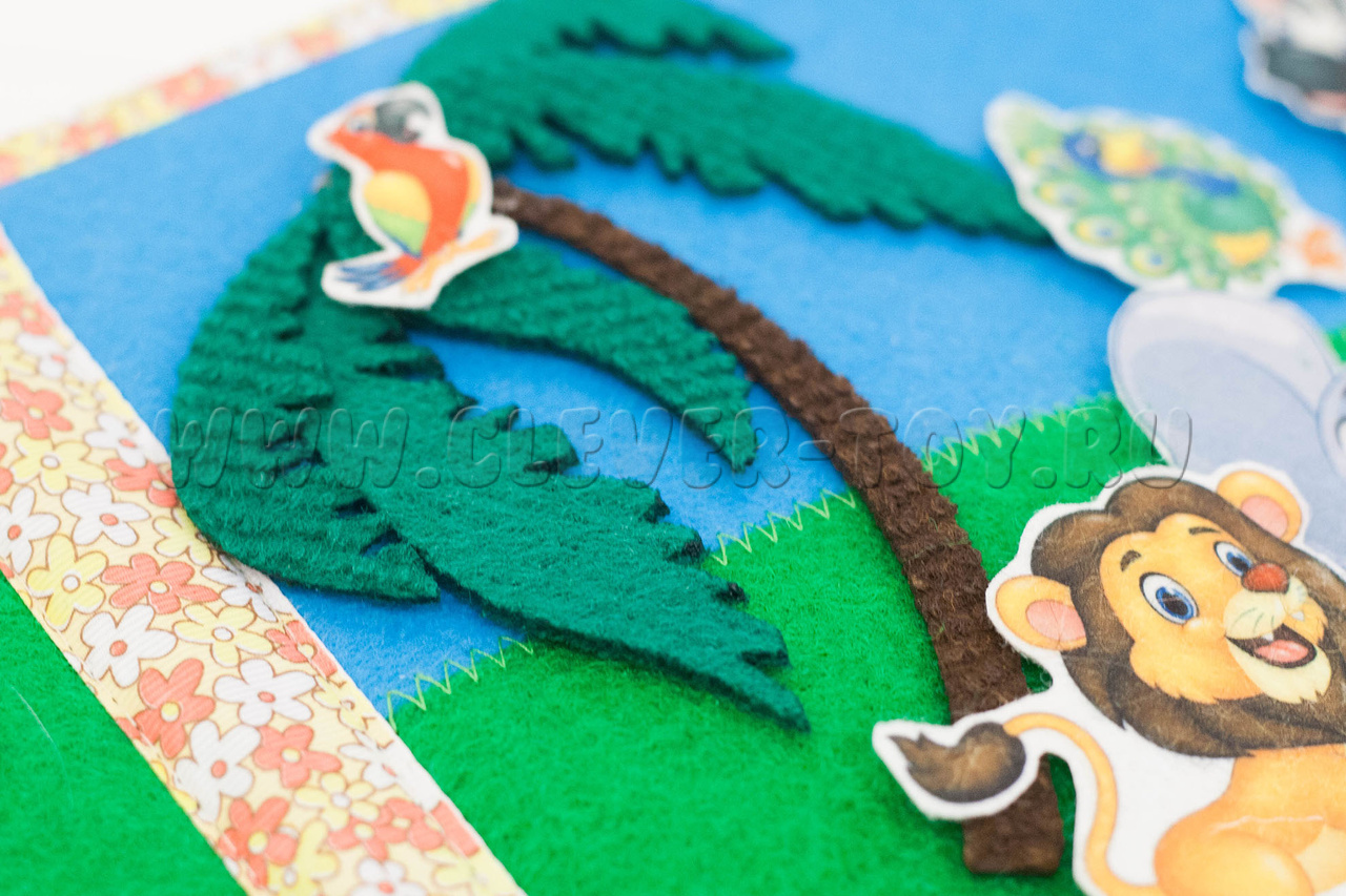 Авторская развивающая книга "Животные жарких стран" из ковролина с фигурами на липучках от российской компании "Лип-Лип".