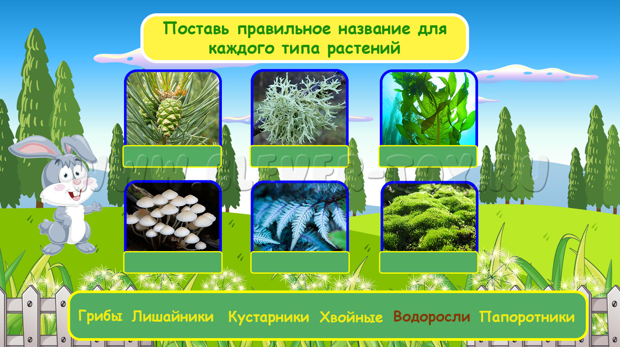 Типы заданий - это различные интерактивные викторины, тесты, пазлы, уроки, красочные иллюстрации, анимационные ролики.