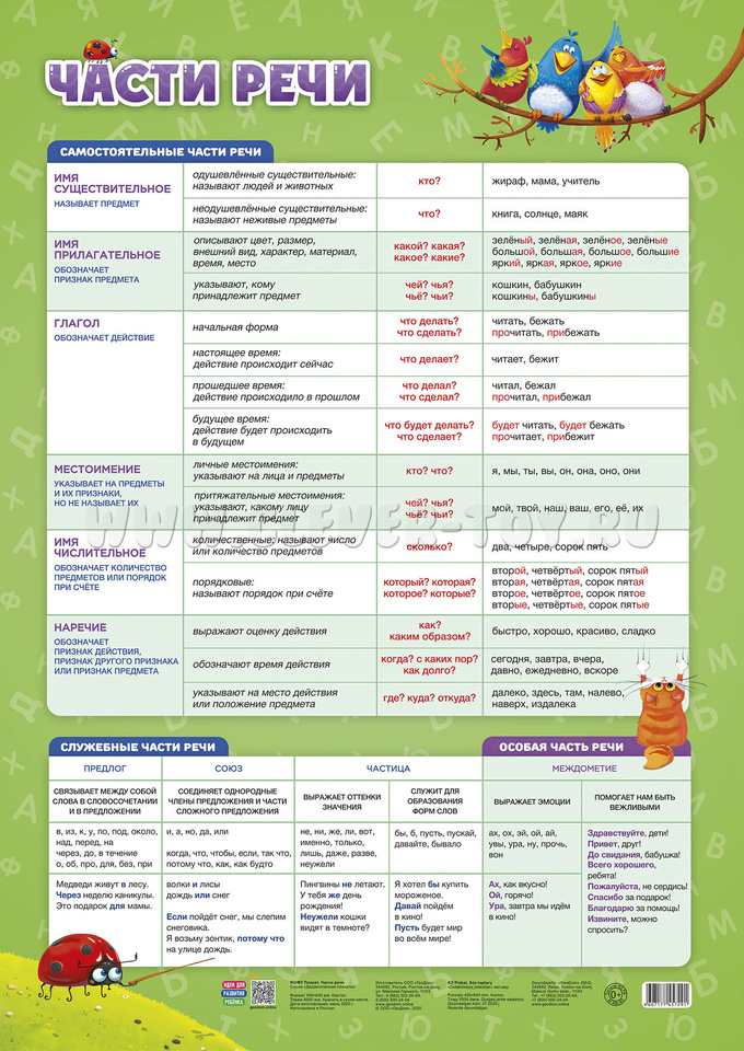 Комплектация: обучающий плакат "Меры величин" (45*64 см), обучающий плакат "Части речи" (45*64 см), обучающий плакат "Падежи и склонения" (45*64 см).