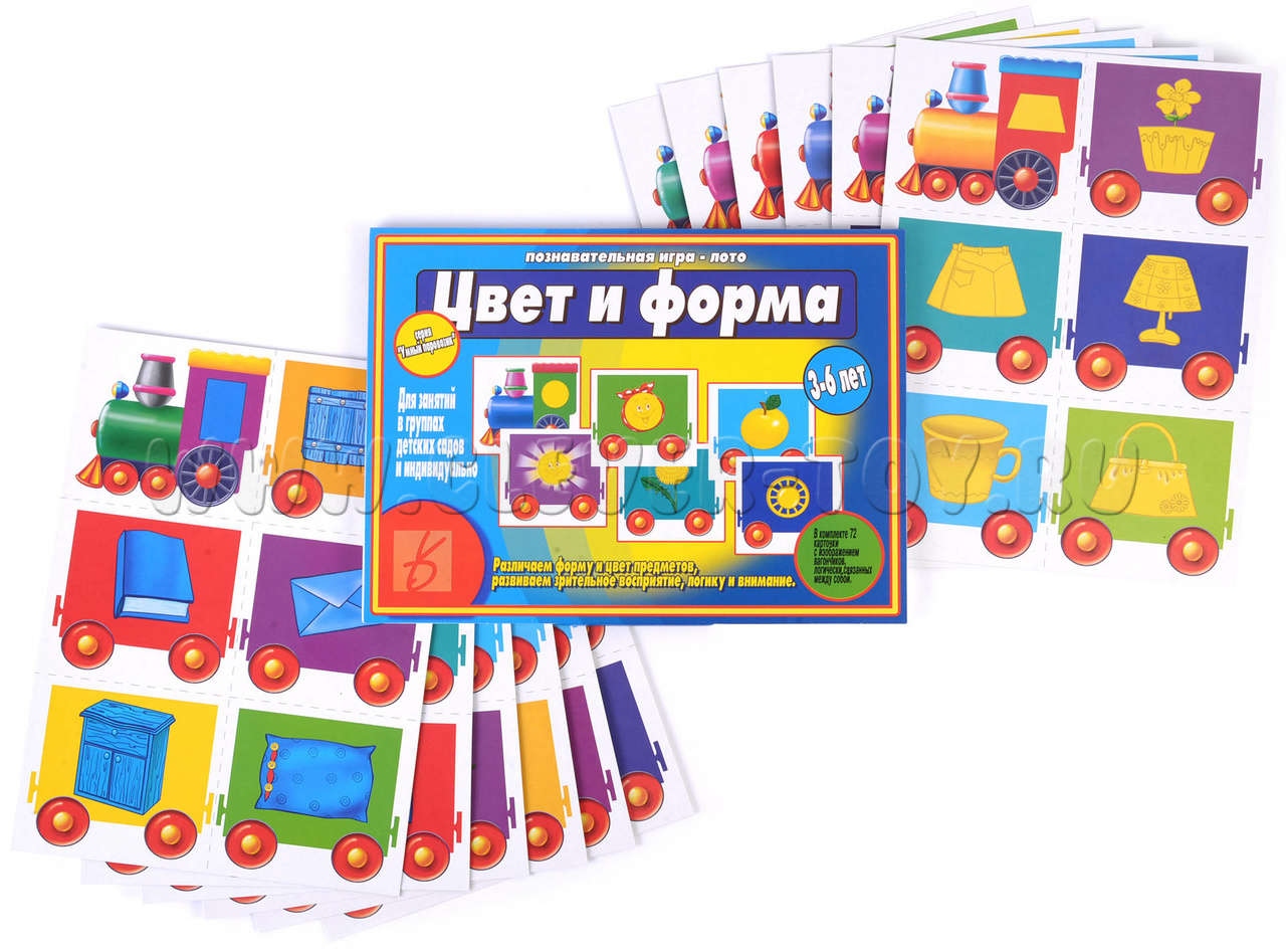 Познавательная игра-лото серии "Умный паровозик" для детей 3-6 лет, при помощи которой дети научатся различать цвет и форму предметов, разовьют зрительное внимание, логическое мышление и речь.