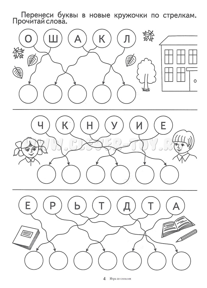 Цветной вкладыш необходимо разрезать по пунктирным линиям. Ребёнку нужно прочитать слово на каждой из карточек по первым буквам картинок.