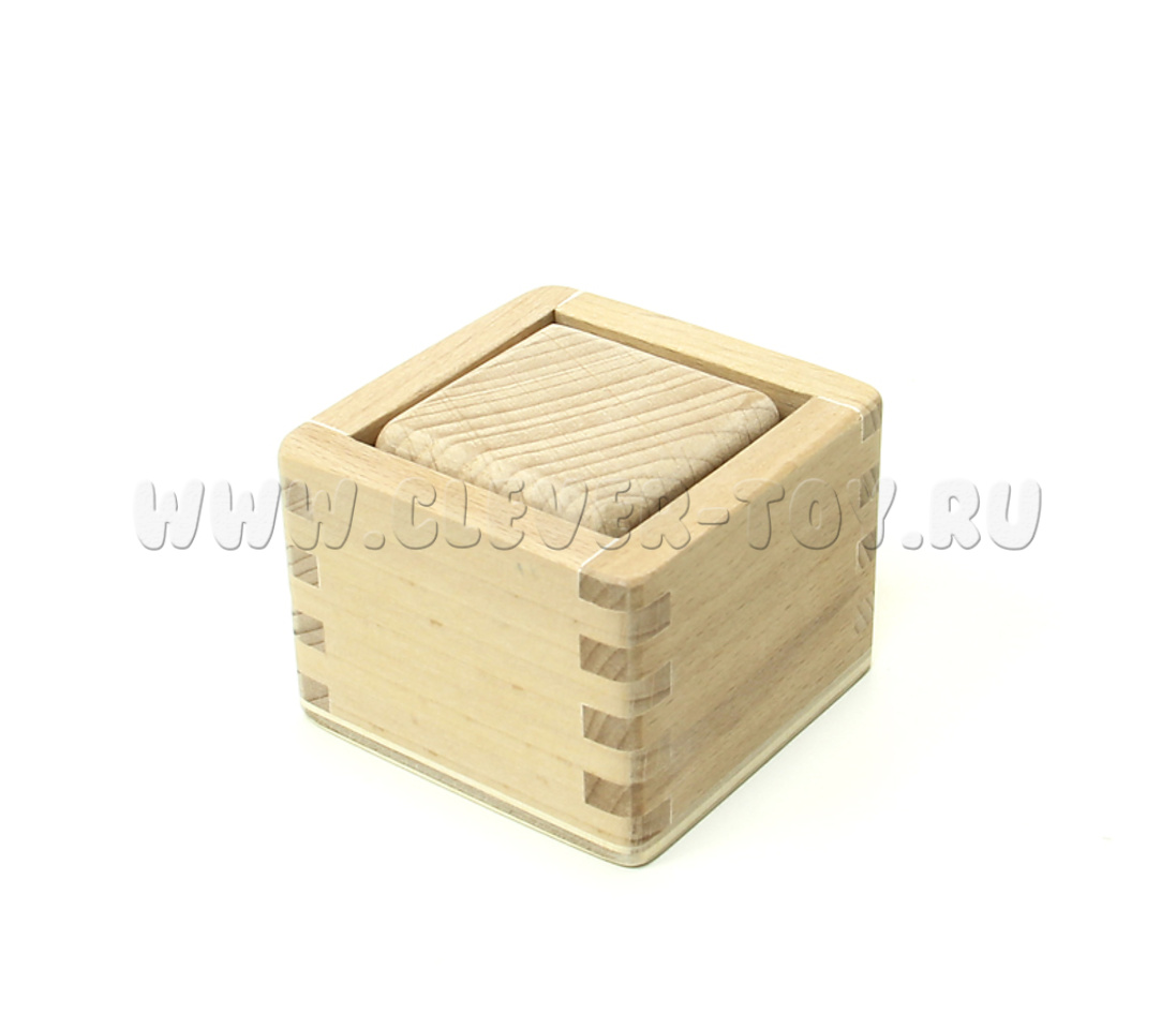 Одна из первых игрушек младенца, умеющего сидеть. Развивает моторику, координацию "глаз-рука", скоординированную работу обеими руками, мышление. Ребенку необходимо перевернуть коробочку, чтобы вынуть кубик, и сориентировать правильно углы, чтобы поместить кубик в коробочку.