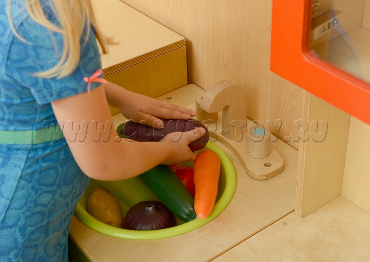 Фигурки выполнены из высококачественного пластика, не имеют острых углов и сколов, безопасны для ребёнка. Овощи упакованы в картонную коробку.