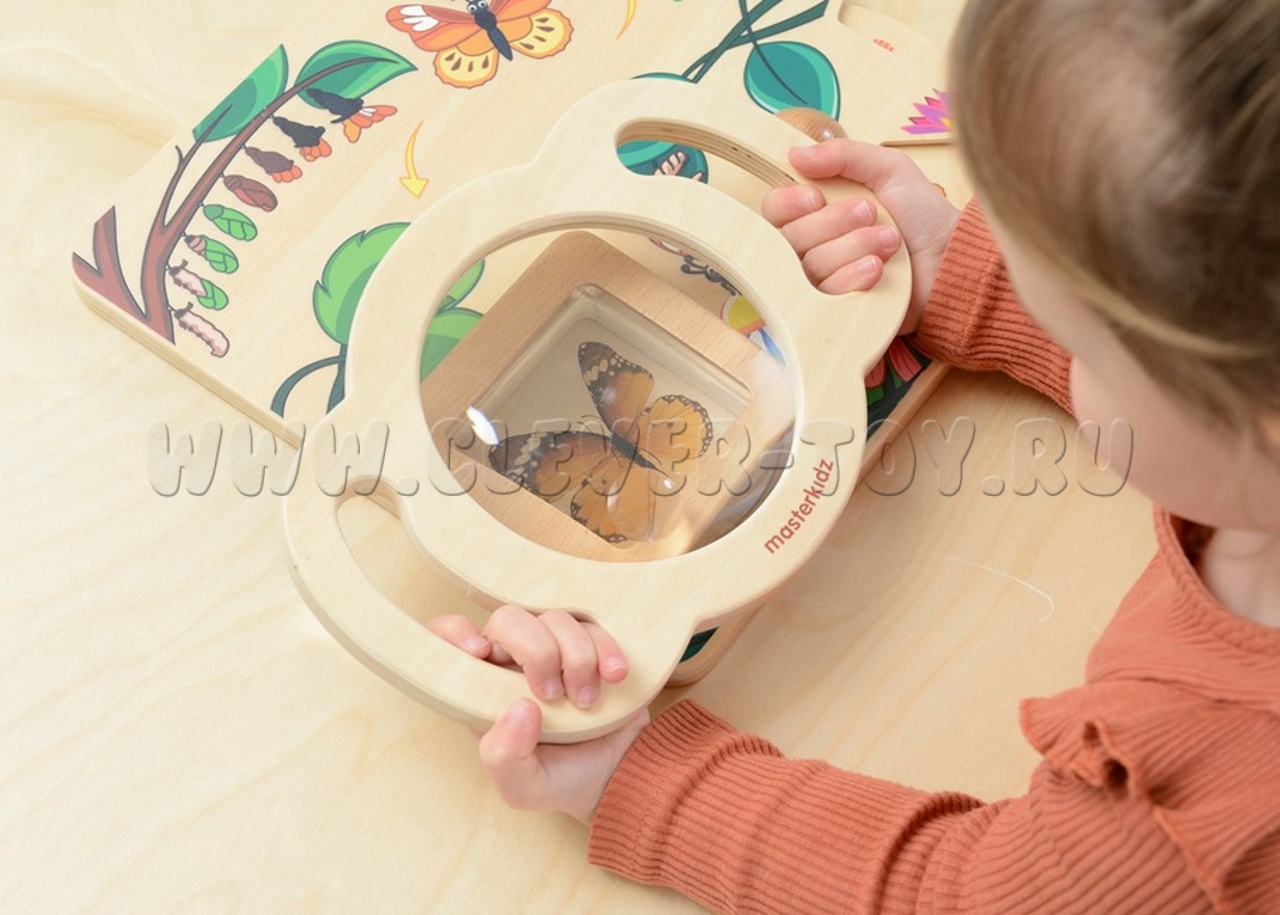 Благодаря лёгкому корпусу из фанеры и 2-м удобным ручкам, даже малыши смогут поднести лупу к объекту, который они хотят детально рассмотреть.