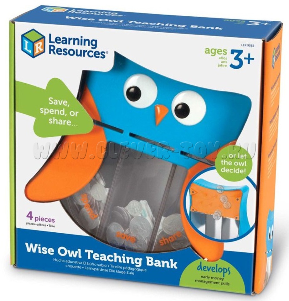 Это не простая копилка. Сова поможет ребенку в распределении его финансов и научит думать о других! В корпусе 3 съемных отделения с прорезями для купюр и монет: